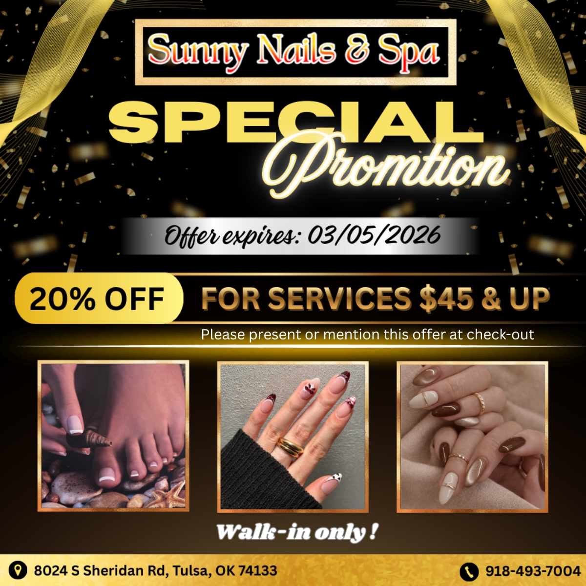 Located conveniently in Tulsa, OK 74133, Sunny Nails & Spa is the ideal destination for